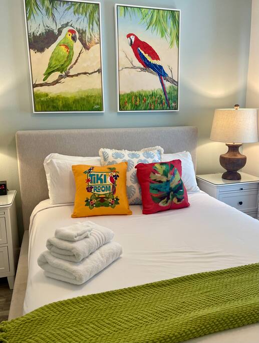 Welcome to Your Charming 4-Bedroom Cottage at Margaritaville Resort! Indulge in an enchanting Orlando escape at our delightful Margaritaville Resort cottage, just a short drive from Disney World and Universal Studios. This spacious 4-bedroom haven is designed to enhance every aspect of your vacation, featuring a fully equipped kitchen, cozy bedrooms with smart TVs, and seamless high-speed WiFi. Perfect Hub for Adventure: Located within the lively Margaritaville Resort, our cottage serves as a prime base for exploring all that Orlando offers. Whether it's thrilling theme parks, top shopping spots, or cultural attractions, you'll be perfectly positioned to dive into the excitement while enjoying the tranquil resort surroundings. Unforgettable Disney Magic: Immerse yourself in the magical world of Disney, just moments from our doorstep. Whether you crave the excitement of Magic Kingdom or the cinematic wonder of Hollywood Studios, our cottage provides a serene retreat for unwinding after a day of creating timeless memories. Vibrant Dining and Entertainment: Experience a variety of culinary delights and entertainment options near our cottage. Delight in local flavors at charming eateries or elevate your dining experience with world-class cuisine. Afterward, relax with a cocktail at a nearby bar or enjoy live music and performances, ensuring each evening is as memorable as your daytime adventures. Impeccable Living Space: Step into our newly decorated cottage featuring a stylish living area with smart TVs for relaxing with your favorite shows. The dining area offers a cozy setting for family meals, complemented by a fully equipped kitchen for preparing delicious meals or quick snacks between outings. Cozy Bedrooms: Each of our four bedrooms is designed for comfort and privacy. The master bedroom boasts a luxurious king-size bed and an en-suite bathroom for a peaceful retreat. The second bedroom features two twin beds enhanced with a beach Mario theme and a smart TV. The third bedroom offers a comfortable queen-size bed and smart TV. The fourth bedroom provides a queen-size bed and smart TV for a restful night's sleep. Outdoor Oasis: Make memories on our outdoor patio, perfect for enjoying morning coffee or evening wine under the stars. The patio's comfortable seating and serene ambiance create a perfect setting for quality time with loved ones, enhancing your vacation experience. Thoughtful Decor: Our cottage is adorned with fresh decor and thoughtful details to create a welcoming atmosphere. Every element is carefully selected to ensure a comfortable and inviting space where you can truly feel at home during your stay. Don't miss out on this exceptional vacation opportunity! Book your stay at our Margaritaville Resort cottage and embark on a journey filled with unforgettable moments and cherished memories. Whether you seek adventure in Orlando's attractions or relaxation in a serene setting, our cottage offers the ideal blend of comfort, convenience, and magic. We can't wait to welcome you to your Orlando home away from home! Please Note: The villa is located within the Margaritaville Resort; nonetheless, access to the resort's swimming pools and gym is not provided. Unfortunately, this decision is not within our control. While we would like to include these amenities, they are only available if you book directly through Margaritaville and pay $100 or more per night. We suggest taking advantage of cost savings and exploring the nearby water park instead!