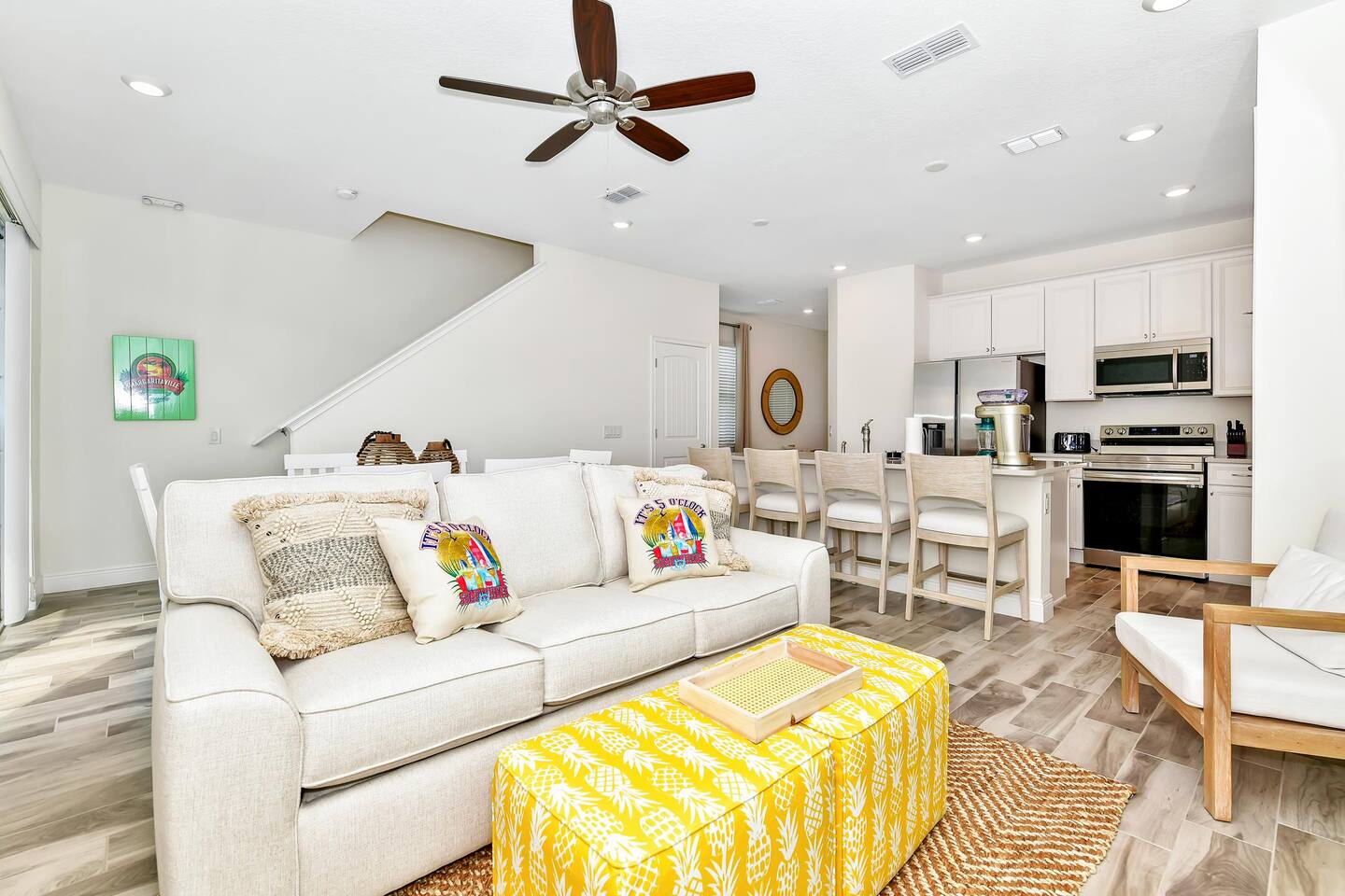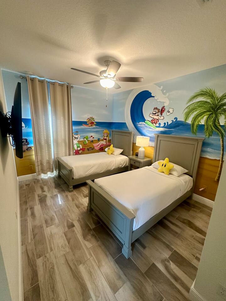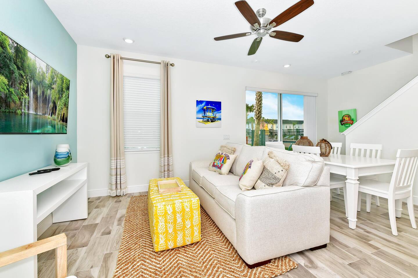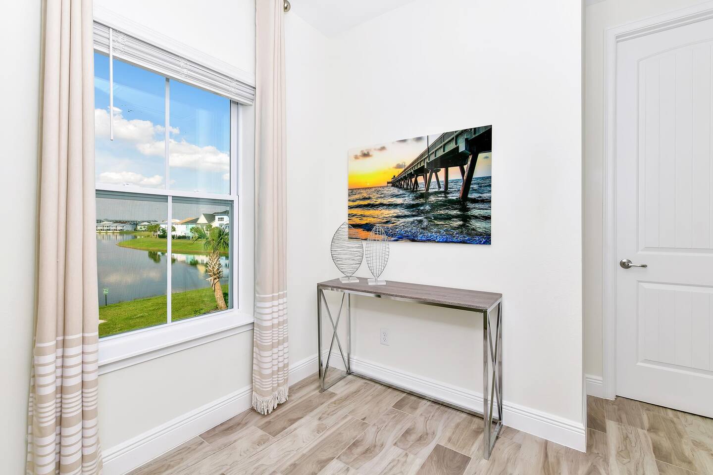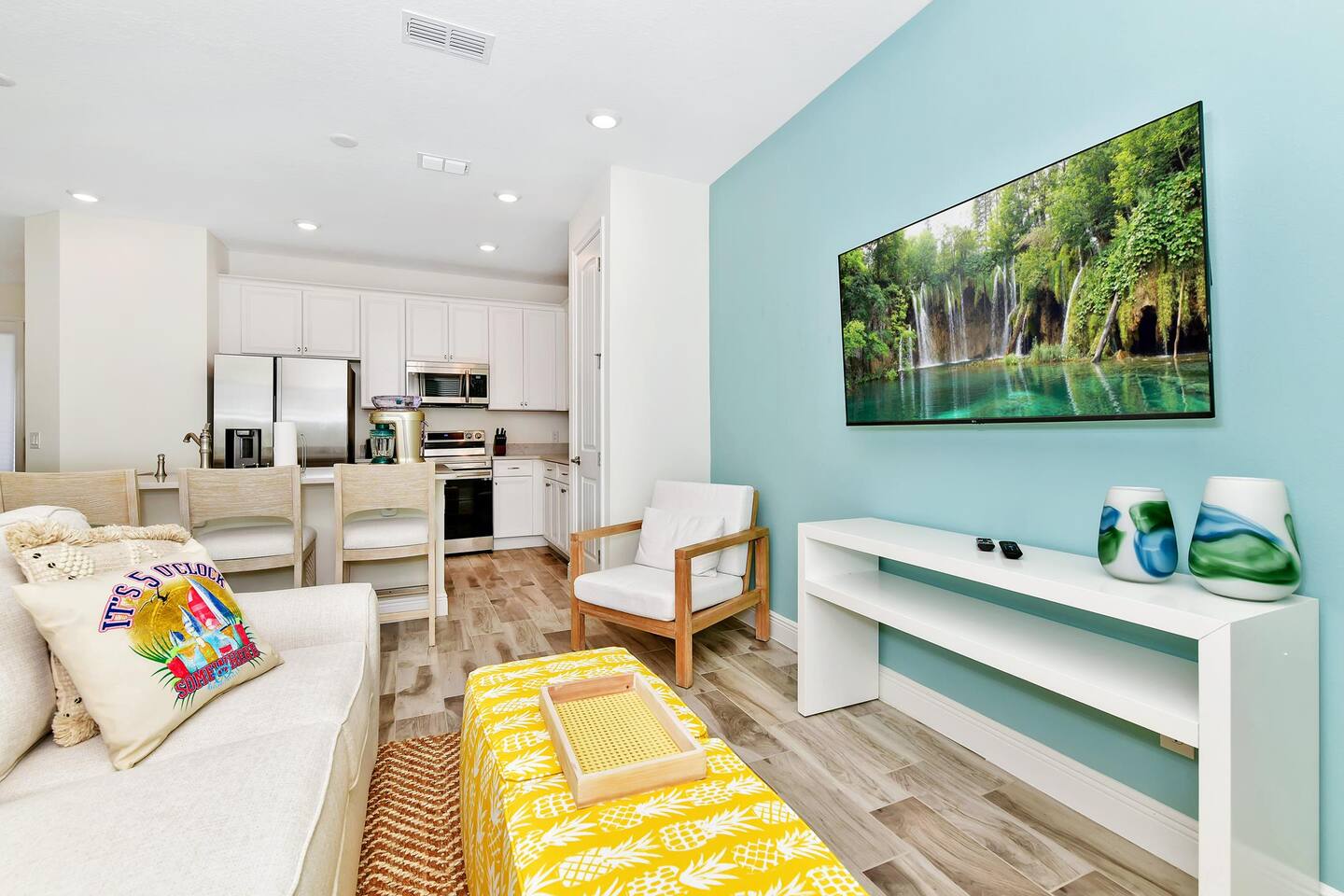 The "Smart Choice" for Your Orlando Vacation 🦜 Welcome to paradise! This stunning 4-bedroom cottage nestled in the heart of Margaritaville Resort offers the perfect blend of luxury, location, and value. With a beautiful view overlooking the lake, a fully equipped kitchen, and a custom "Beach Mario" themed room for the kids, this is the ultimate home base for your Disney and Universal adventures. WHY BOOK THIS COTTAGE? We offer a luxury experience without the hidden costs! Best Value: By opting out of the specific resort pool access, we pass the savings on to you—no daily resort fees! Better Water Park: For a pool day, the incredible Island H2O Water Park is just a short walk away. It offers a far superior experience with massive slides, lazy rivers, and wave pools (tickets purchased separately). Perfect for Park-Goers: If you are spending your days at Disney or Universal, why pay for resort amenities you won't have time to use? 🏠 The Space: Comfort Meets Style Step into a bright, newly decorated open-concept living area designed for relaxation. Living Room: Stylish decor, comfortable seating, and a large Smart TV—perfect for movie nights. Kitchen & Dining: A fully equipped kitchen with everything you need to whip up breakfast or a midnight snack, plus a cozy dining area for family meals. Outdoor Oasis: Sip your morning coffee or enjoy an evening glass of wine on your private patio under the stars. 🛏️ Bedroom Configuration (Sleeps up to 8) Every room features a Smart TV and high-speed WiFi. Bedroom 1 (Master): Luxurious King Bed with a private en-suite bathroom. Bedroom 2 (Kids' Favorite): Two Twin Beds featuring a custom "Beach Mario" theme that kids absolutely love! Bedroom 3: Comfortable Queen Bed. Bedroom 4: Comfortable Queen Bed. 📍 Unbeatable Location You are in the center of the action! Walkable: Stroll to Sunset Walk for vibrant dining, live music, bars, and shopping. Theme Parks: Just minutes from Disney World, Universal Studios, and SeaWorld. Convenience: Supermarkets, pharmacies, and gift shops are all just around the corner. ⚠️ Important Guest Information Resort Amenities: Please note that while we are located within the beautiful Margaritaville Resort, this private cottage does not include access to the "Fins Up" resort pools or gym. We recommend Island H2O Live! next door for water fun. Guest Acknowledgment Form: A requirement of the resort is that all guests must complete a Guest Acknowledgment Form prior to arrival. This is mandatory. The form will be emailed to you immediately after booking. Failure to complete this form will result in cancellation of the reservation. Ready for a laid-back luxury escape without the resort fees? Book your stay today and start your Orlando adventure!