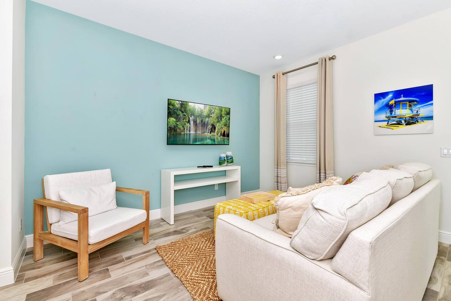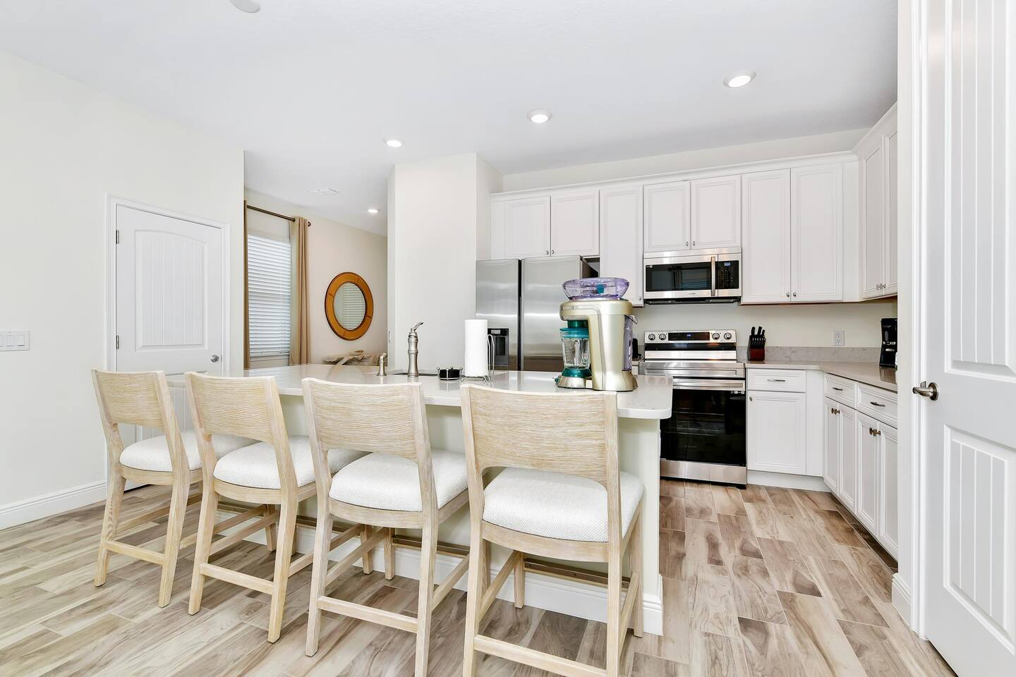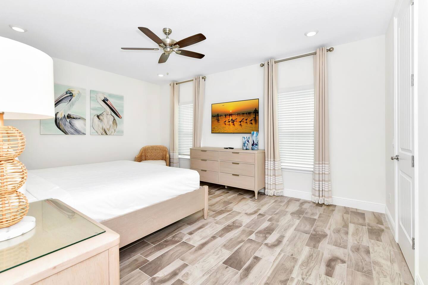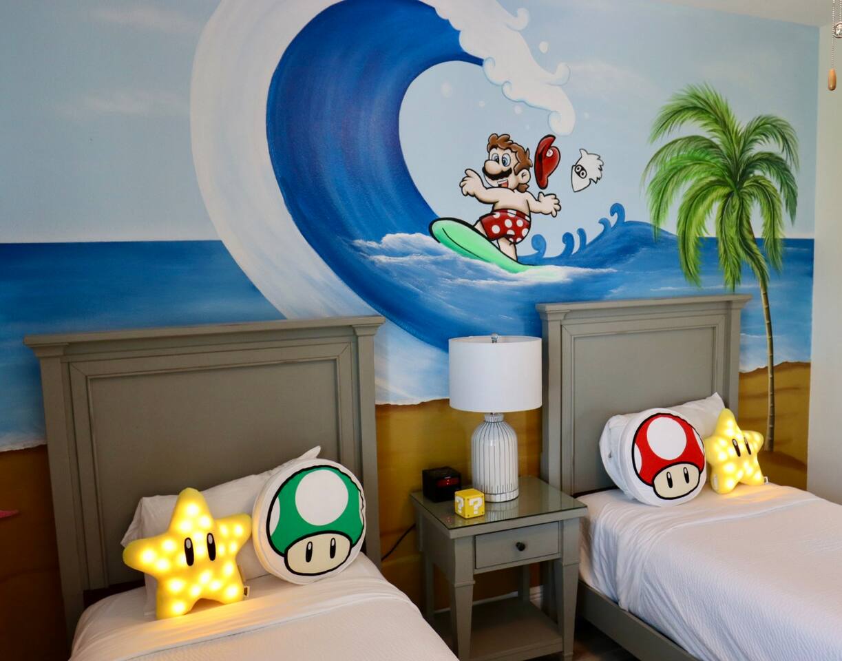 The "Smart Choice" for Your Orlando Vacation 🦜 Welcome to paradise! This stunning 4-bedroom cottage nestled in the heart of Margaritaville Resort offers the perfect blend of luxury, location, and value. With a beautiful view overlooking the lake, a fully equipped kitchen, and a custom "Beach Mario" themed room for the kids, this is the ultimate home base for your Disney and Universal adventures. WHY BOOK THIS COTTAGE? We offer a luxury experience without the hidden costs! Best Value: By opting out of the specific resort pool access, we pass the savings on to you—no daily resort fees! Better Water Park: For a pool day, the incredible Island H2O Water Park is just a short walk away. It offers a far superior experience with massive slides, lazy rivers, and wave pools (tickets purchased separately). Perfect for Park-Goers: If you are spending your days at Disney or Universal, why pay for resort amenities you won't have time to use? 🏠 The Space: Comfort Meets Style Step into a bright, newly decorated open-concept living area designed for relaxation. Living Room: Stylish decor, comfortable seating, and a large Smart TV—perfect for movie nights. Kitchen & Dining: A fully equipped kitchen with everything you need to whip up breakfast or a midnight snack, plus a cozy dining area for family meals. Outdoor Oasis: Sip your morning coffee or enjoy an evening glass of wine on your private patio under the stars. 🛏️ Bedroom Configuration (Sleeps up to 8) Every room features a Smart TV and high-speed WiFi. Bedroom 1 (Master): Luxurious King Bed with a private en-suite bathroom. Bedroom 2 (Kids' Favorite): Two Twin Beds featuring a custom "Beach Mario" theme that kids absolutely love! Bedroom 3: Comfortable Queen Bed. Bedroom 4: Comfortable Queen Bed. 📍 Unbeatable Location You are in the center of the action! Walkable: Stroll to Sunset Walk for vibrant dining, live music, bars, and shopping. Theme Parks: Just minutes from Disney World, Universal Studios, and SeaWorld. Convenience: Supermarkets, pharmacies, and gift shops are all just around the corner. ⚠️ Important Guest Information Resort Amenities: Please note that while we are located within the beautiful Margaritaville Resort, this private cottage does not include access to the "Fins Up" resort pools or gym. We recommend Island H2O Live! next door for water fun. Guest Acknowledgment Form: A requirement of the resort is that all guests must complete a Guest Acknowledgment Form prior to arrival. This is mandatory. The form will be emailed to you immediately after booking. Failure to complete this form will result in cancellation of the reservation. Ready for a laid-back luxury escape without the resort fees? Book your stay today and start your Orlando adventure!