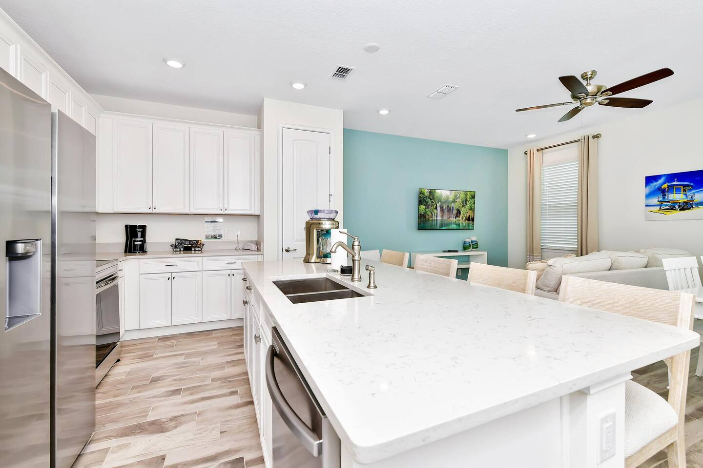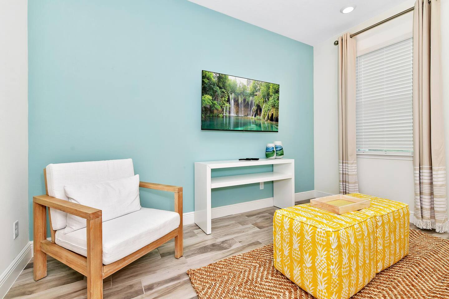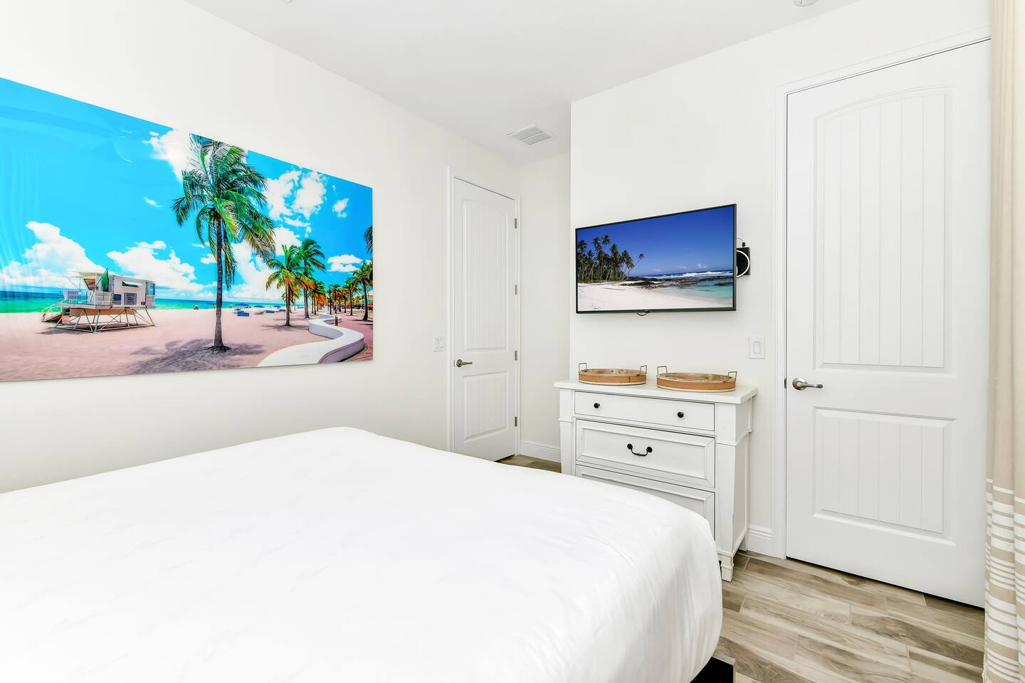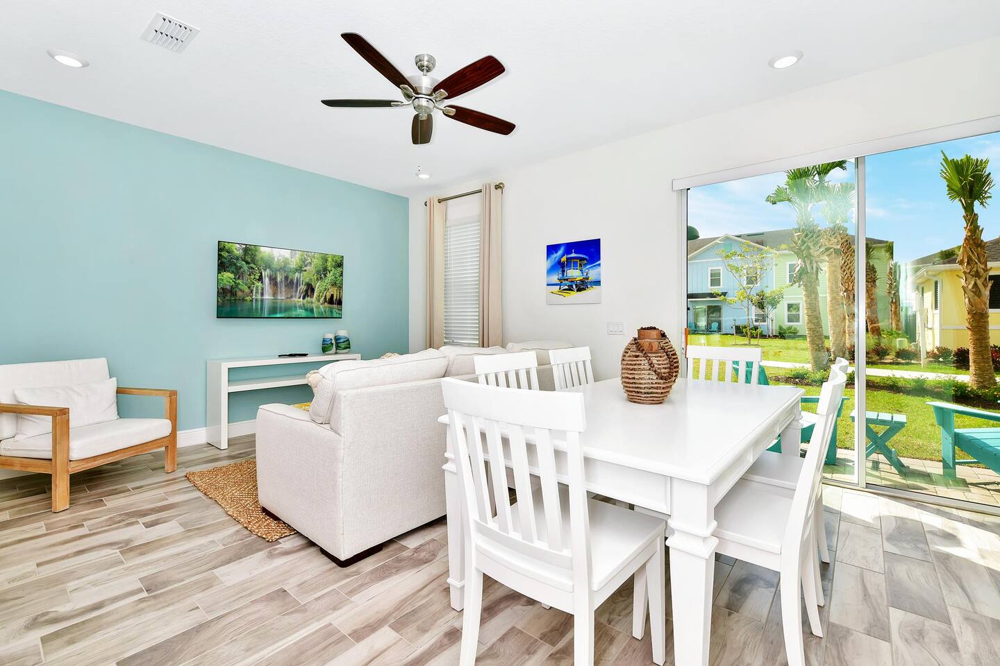 The "Smart Choice" for Your Orlando Vacation 🦜 Welcome to paradise! This stunning 4-bedroom cottage nestled in the heart of Margaritaville Resort offers the perfect blend of luxury, location, and value. With a beautiful view overlooking the lake, a fully equipped kitchen, and a custom "Beach Mario" themed room for the kids, this is the ultimate home base for your Disney and Universal adventures. WHY BOOK THIS COTTAGE? We offer a luxury experience without the hidden costs! Best Value: By opting out of the specific resort pool access, we pass the savings on to you—no daily resort fees! Better Water Park: For a pool day, the incredible Island H2O Water Park is just a short walk away. It offers a far superior experience with massive slides, lazy rivers, and wave pools (tickets purchased separately). Perfect for Park-Goers: If you are spending your days at Disney or Universal, why pay for resort amenities you won't have time to use? 🏠 The Space: Comfort Meets Style Step into a bright, newly decorated open-concept living area designed for relaxation. Living Room: Stylish decor, comfortable seating, and a large Smart TV—perfect for movie nights. Kitchen & Dining: A fully equipped kitchen with everything you need to whip up breakfast or a midnight snack, plus a cozy dining area for family meals. Outdoor Oasis: Sip your morning coffee or enjoy an evening glass of wine on your private patio under the stars. 🛏️ Bedroom Configuration (Sleeps up to 8) Every room features a Smart TV and high-speed WiFi. Bedroom 1 (Master): Luxurious King Bed with a private en-suite bathroom. Bedroom 2 (Kids' Favorite): Two Twin Beds featuring a custom "Beach Mario" theme that kids absolutely love! Bedroom 3: Comfortable Queen Bed. Bedroom 4: Comfortable Queen Bed. 📍 Unbeatable Location You are in the center of the action! Walkable: Stroll to Sunset Walk for vibrant dining, live music, bars, and shopping. Theme Parks: Just minutes from Disney World, Universal Studios, and SeaWorld. Convenience: Supermarkets, pharmacies, and gift shops are all just around the corner. ⚠️ Important Guest Information Resort Amenities: Please note that while we are located within the beautiful Margaritaville Resort, this private cottage does not include access to the "Fins Up" resort pools or gym. We recommend Island H2O Live! next door for water fun. Guest Acknowledgment Form: A requirement of the resort is that all guests must complete a Guest Acknowledgment Form prior to arrival. This is mandatory. The form will be emailed to you immediately after booking. Failure to complete this form will result in cancellation of the reservation. Ready for a laid-back luxury escape without the resort fees? Book your stay today and start your Orlando adventure!